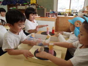 年中組の遊び屋さん。お客さんの年齢に合わせて難しさをかえていました。