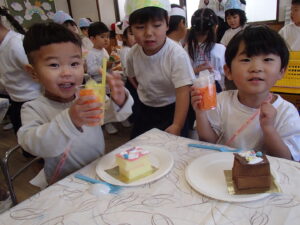 年少組のオムライス屋さんと、ケーキ屋さん。どれもおいしそうです。