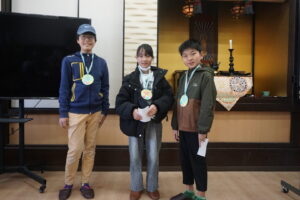 お名前ビンゴをしました。ビンゴになったお友だちには手作りメダルのプレゼントです。