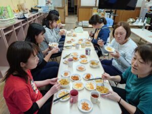 西山幼稚園では、令和8年度より自園給食を行います。子ども達が食べる前に職員で試食会を行いました。